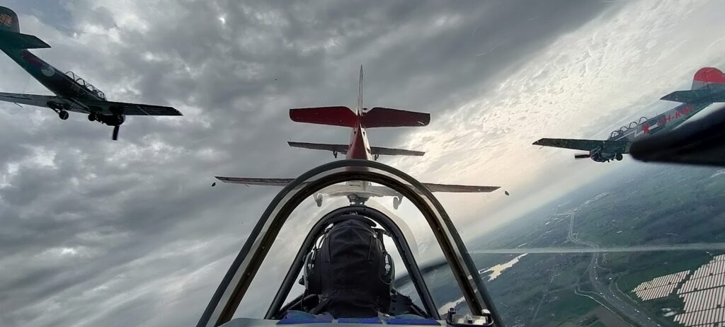 De Dutch Thunder Yaks hebben tijdens de voorjaarstraining weer volop gewerkt aan precisie, teamwork en formatievliegen. Een van de hoogtepunten was de indrukwekkende 5-ship formatie fly-by, waarbij vijf Yak-52’s in strakke formatie overvlogen. Een prachtig gezicht én een mooi resultaat van training, discipline en samenwerking ter voorbereiding op het nieuwe seizoen.